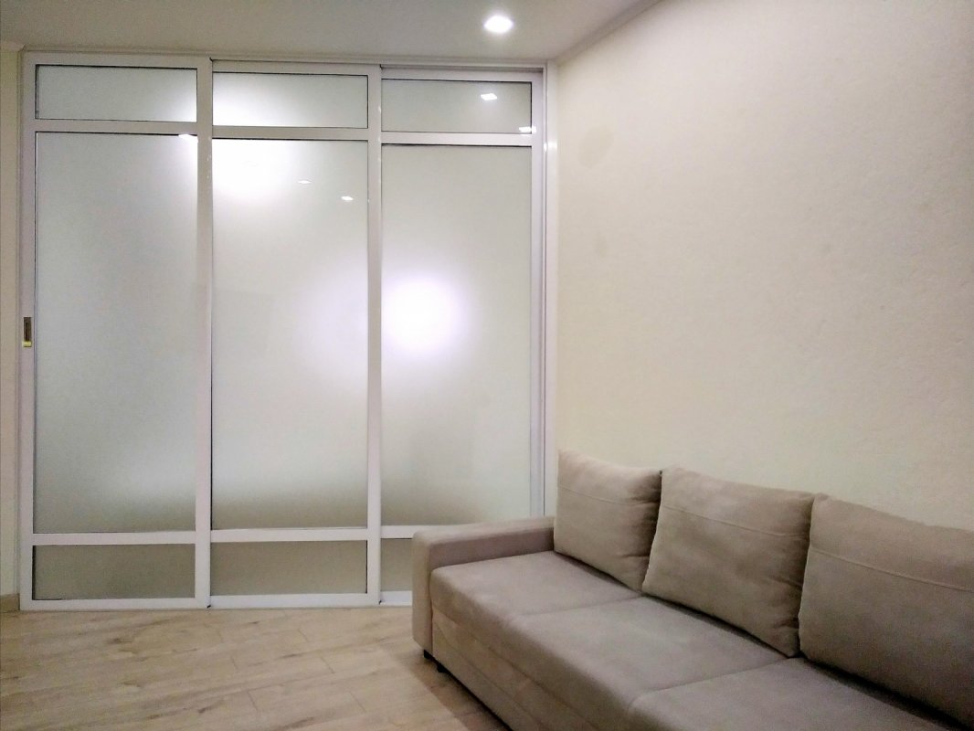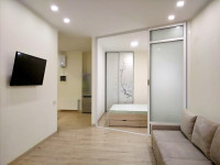 Пространство удобно спланировано с выделением личной зоны для сна. Гостевая (рабочая) зона очень просторная и позволяет обустроить её по своему вкусу.
